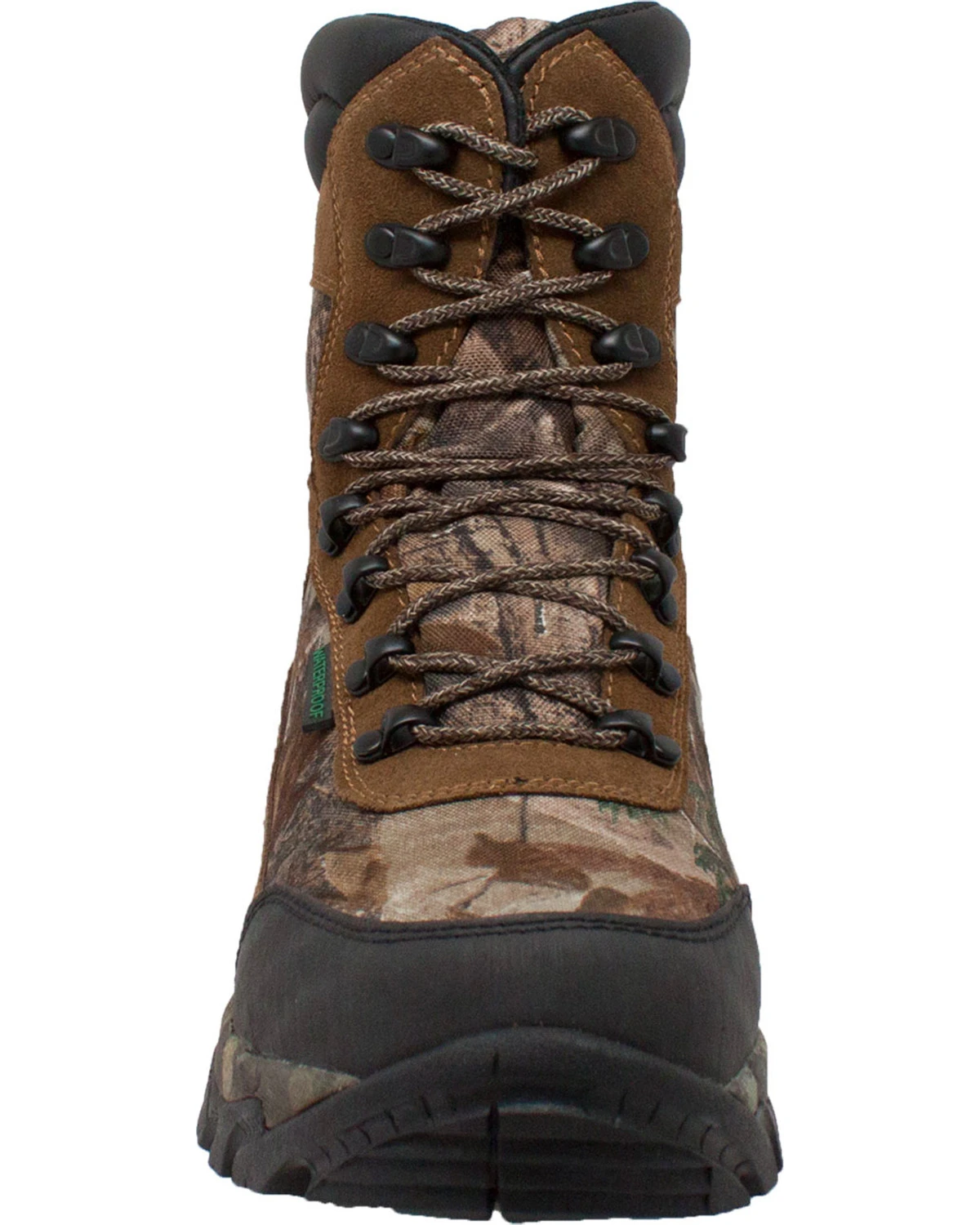 - Real Tree camo fabric; brown suede leather