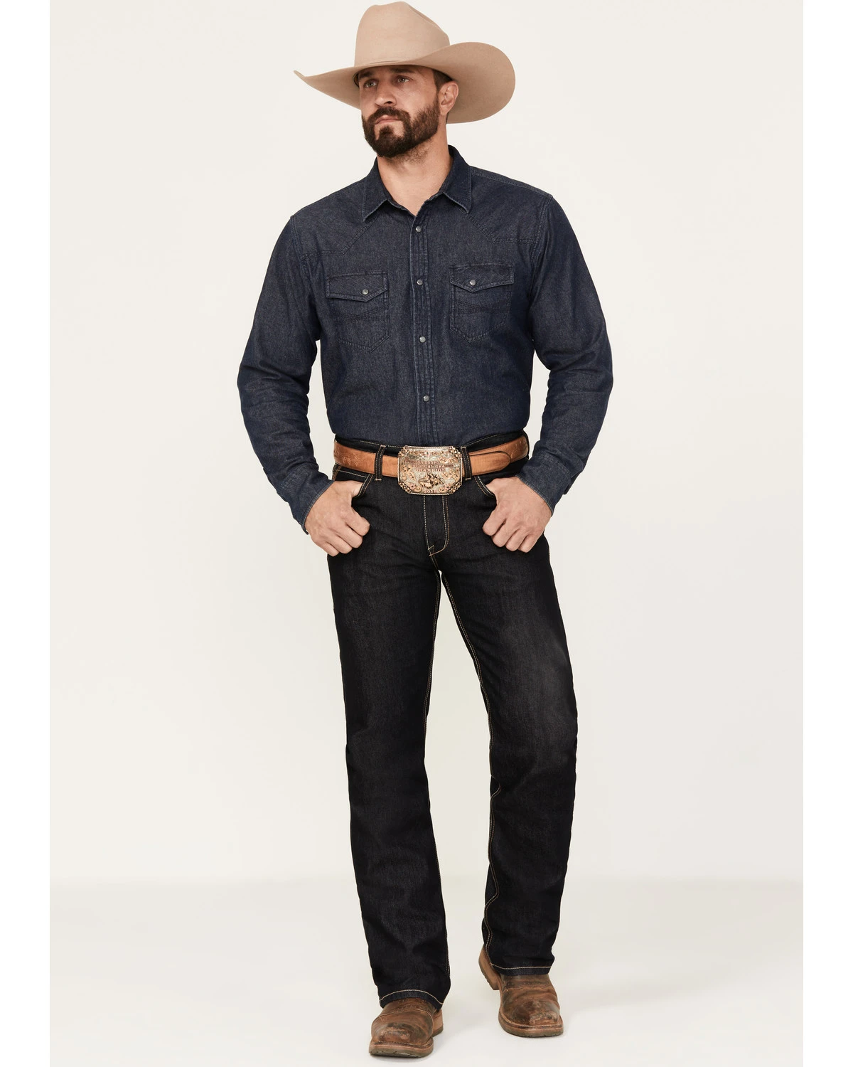 - “Ariat Denim” patch on back hem