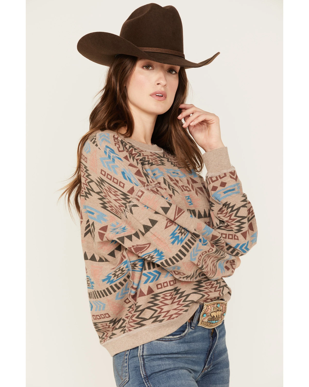 - Allover multicolored knit Southwestern pattern