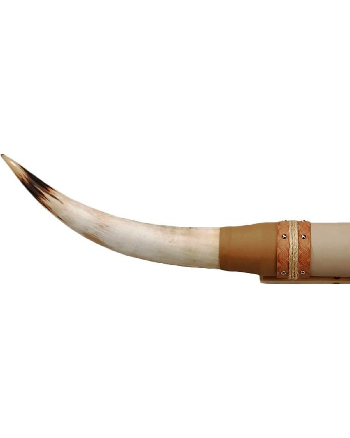 - Genuine steer horns mounted on a wood base