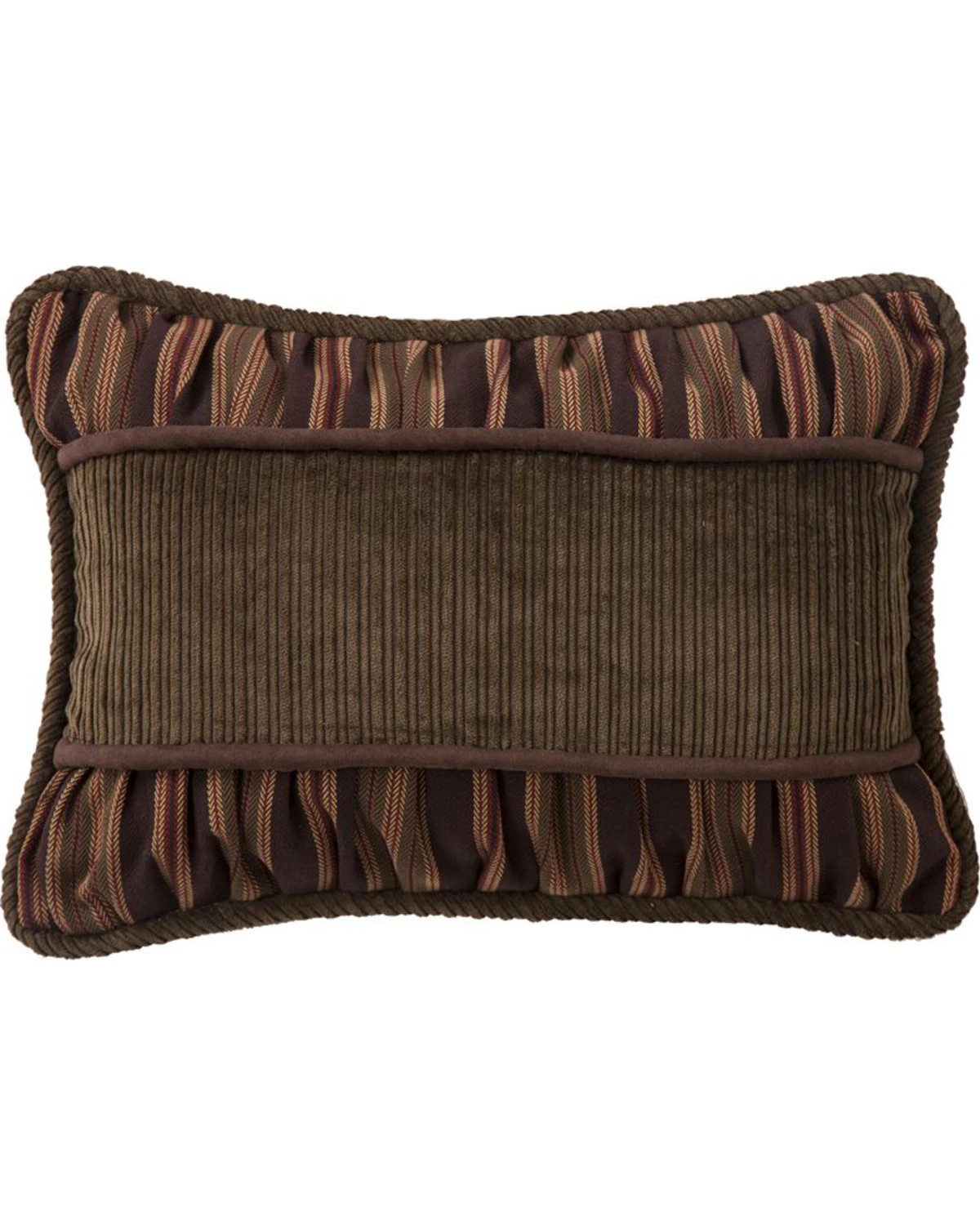 This pillow from HiEnd Accents features a unique corduroy material center along with patterned ruching details on the edges. Measures 14X20″.