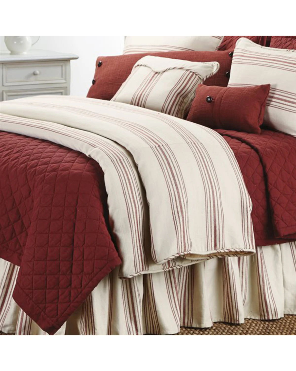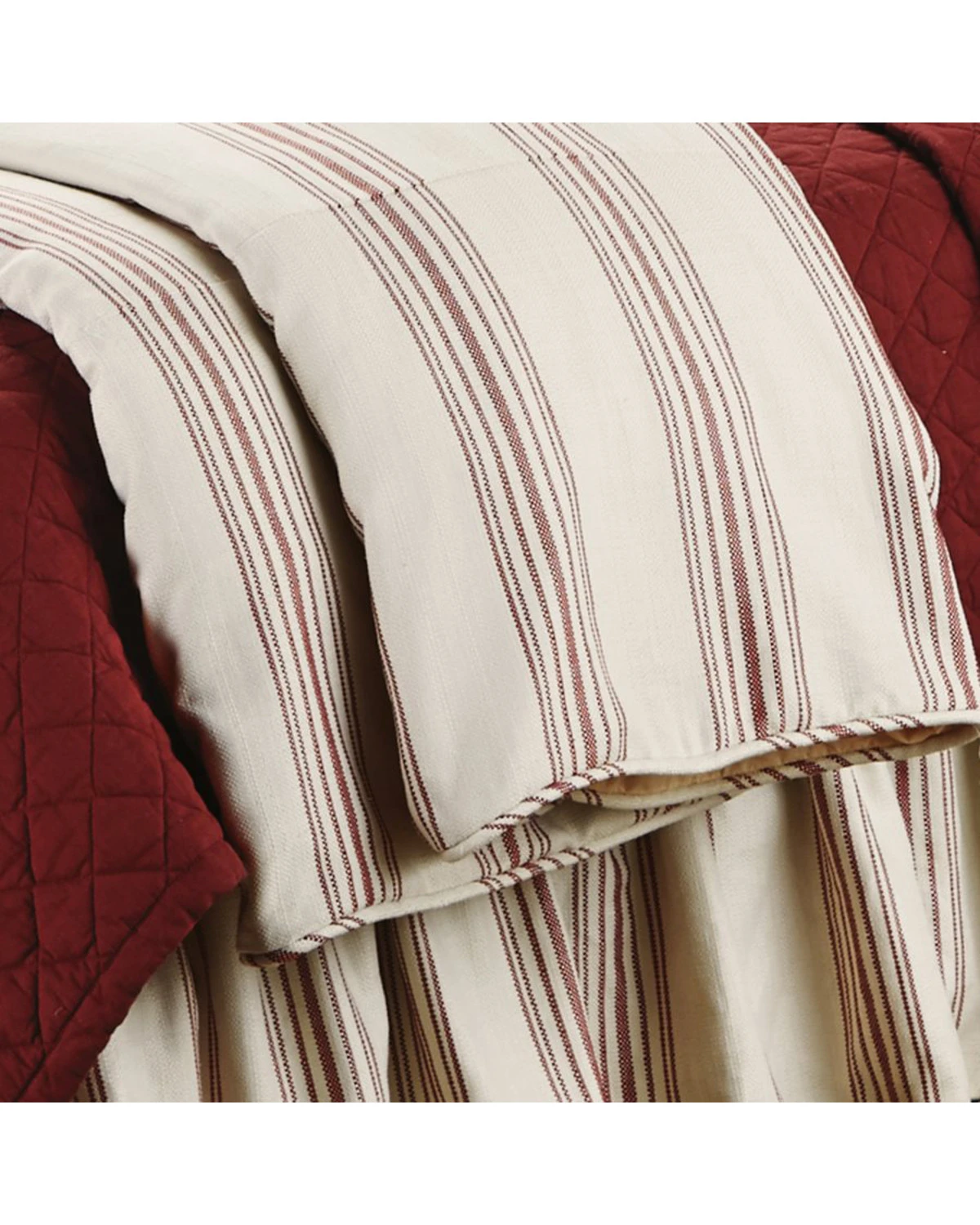 Decorate your bedroom with this stylish red striped Prescott duvet by HiEnd Accents. Super king size duvet measures 92″ x 96″. Made with 100% Polyester. Dry Clean Only.