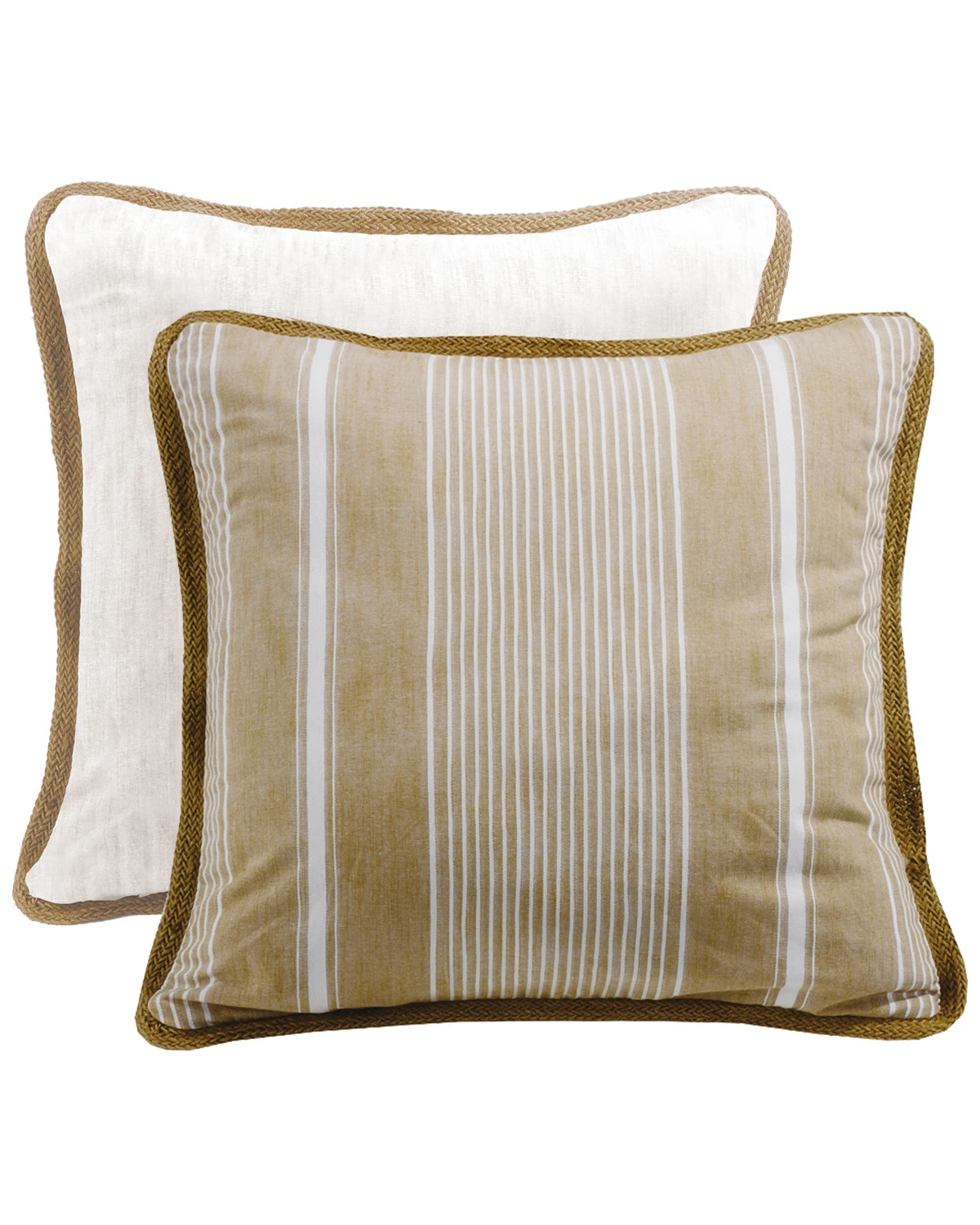 This beautiful, neutral-colored pillow sham features tan and white stripes on one side and reverses to white for versatility. This sham will add sophistication to your decor no matter how you display it. Measures 27″ x 27″.Â