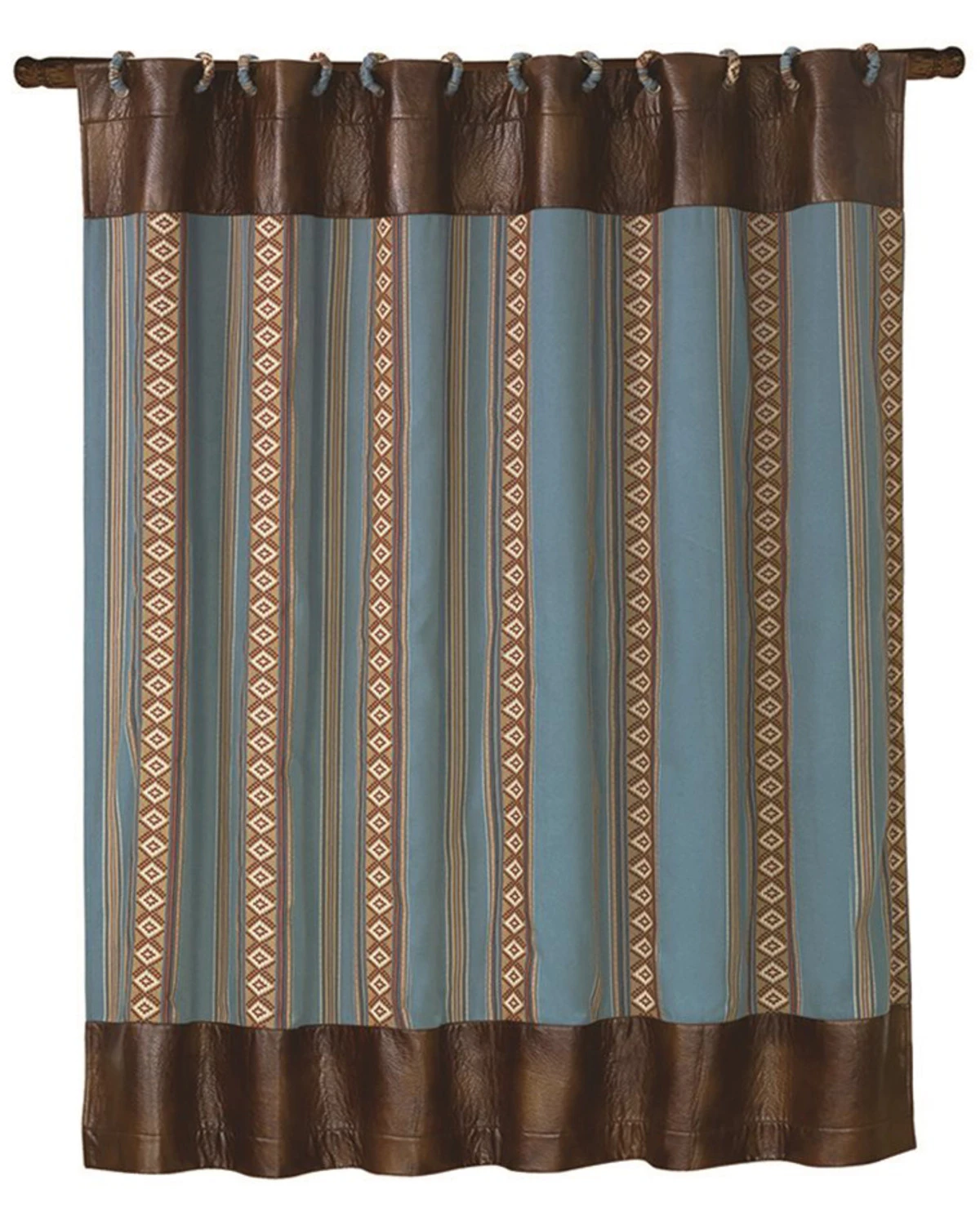 Accent your bathroom with this Ruidoso Blue Striped Shower Curtain from HiEnd Accents. Measures 72″ x 72″ and includes color coordinating rings.