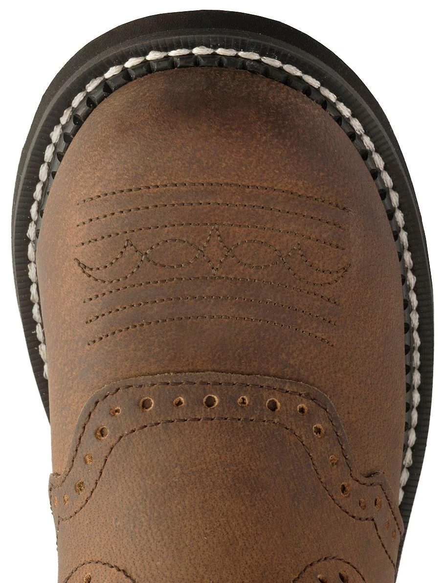 - 8″ aged bark leather shaft