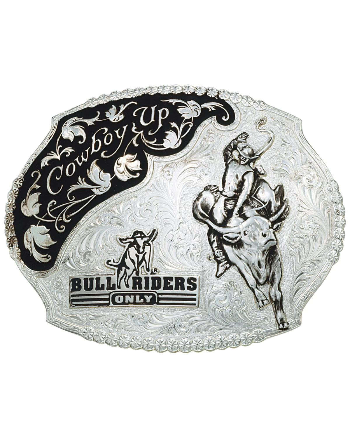 - Silver engraved bull rider figure and a “Bull Riders Only” logo