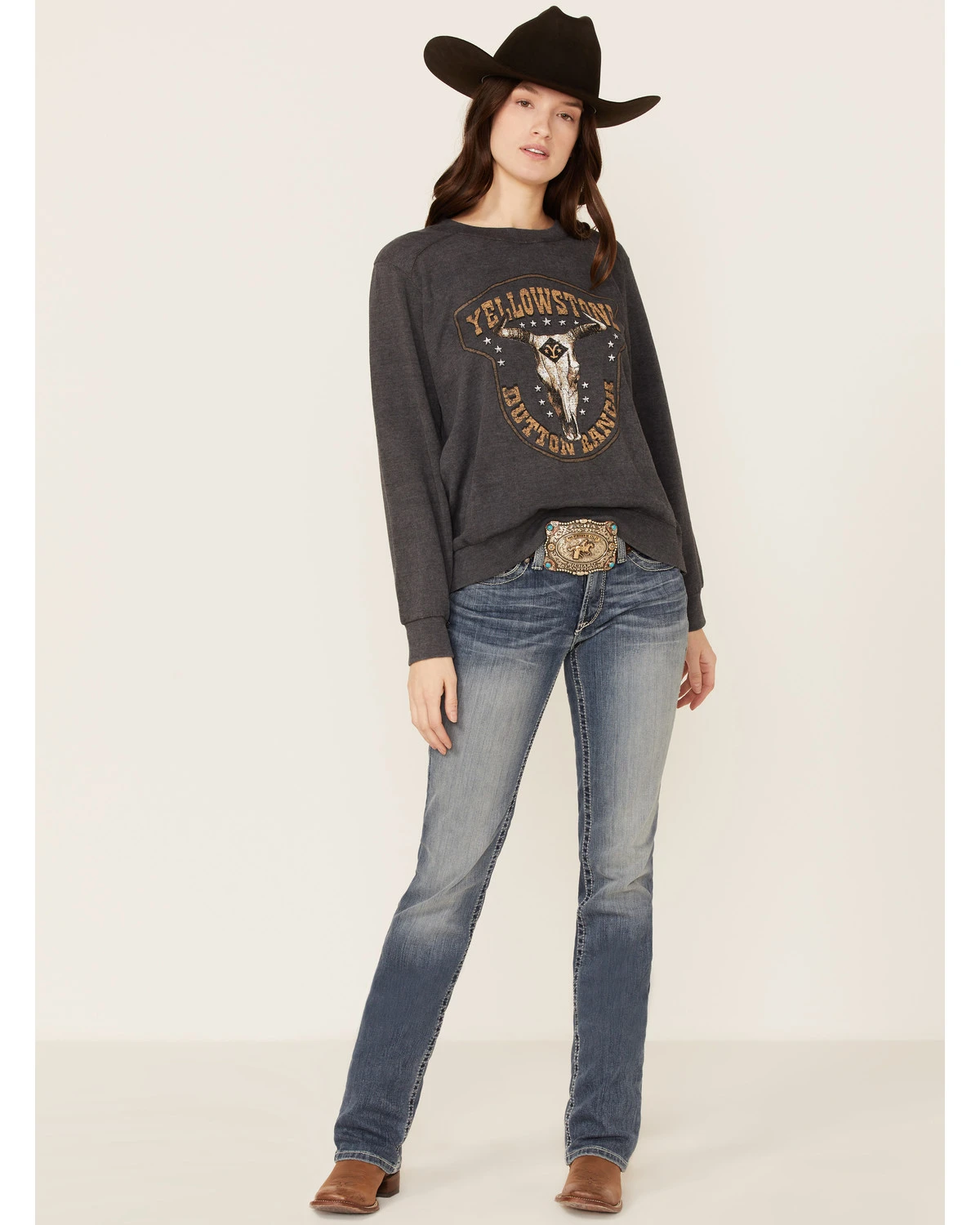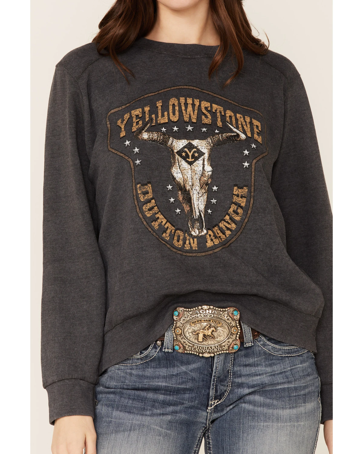 - Front “Yellowstone Dutton Ranch” and steerhead screen print details