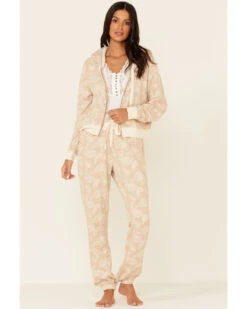 Idyllwind Women’s Tan Floral Print Sherpa Zip-Front Hooded Jacket
