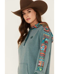 HOOey Women’s Southwestern Print Button Down Hooded Pullover