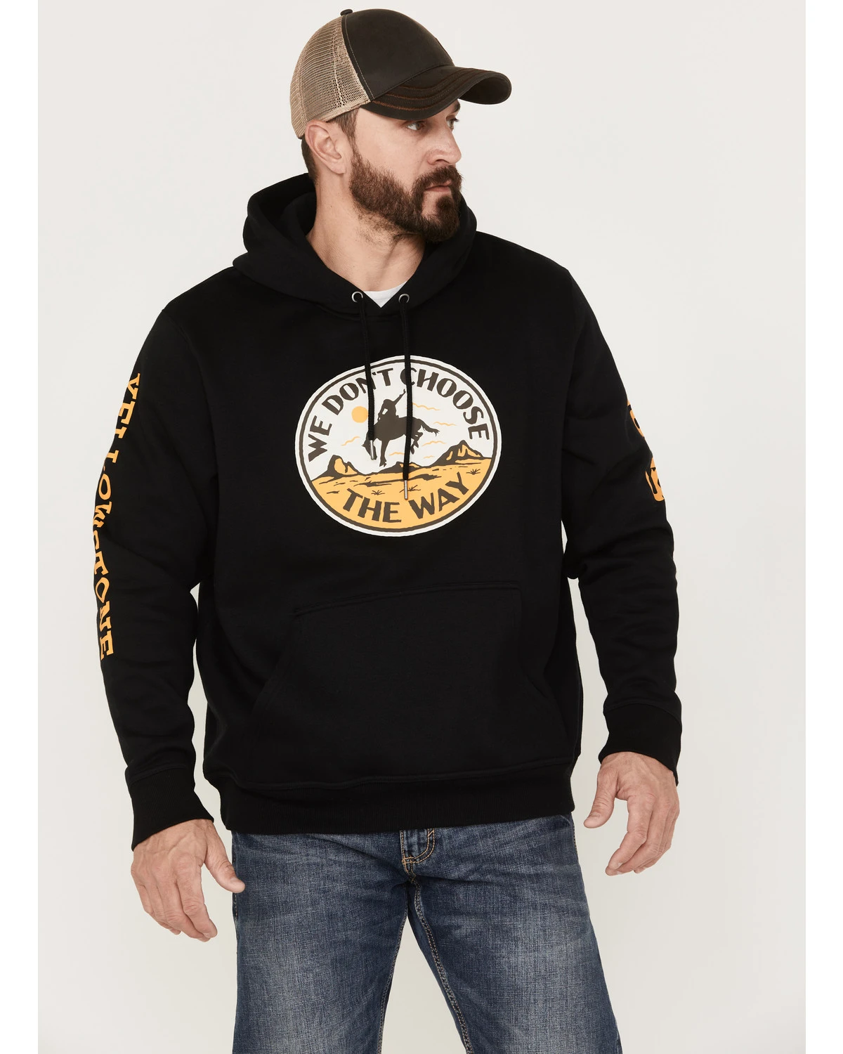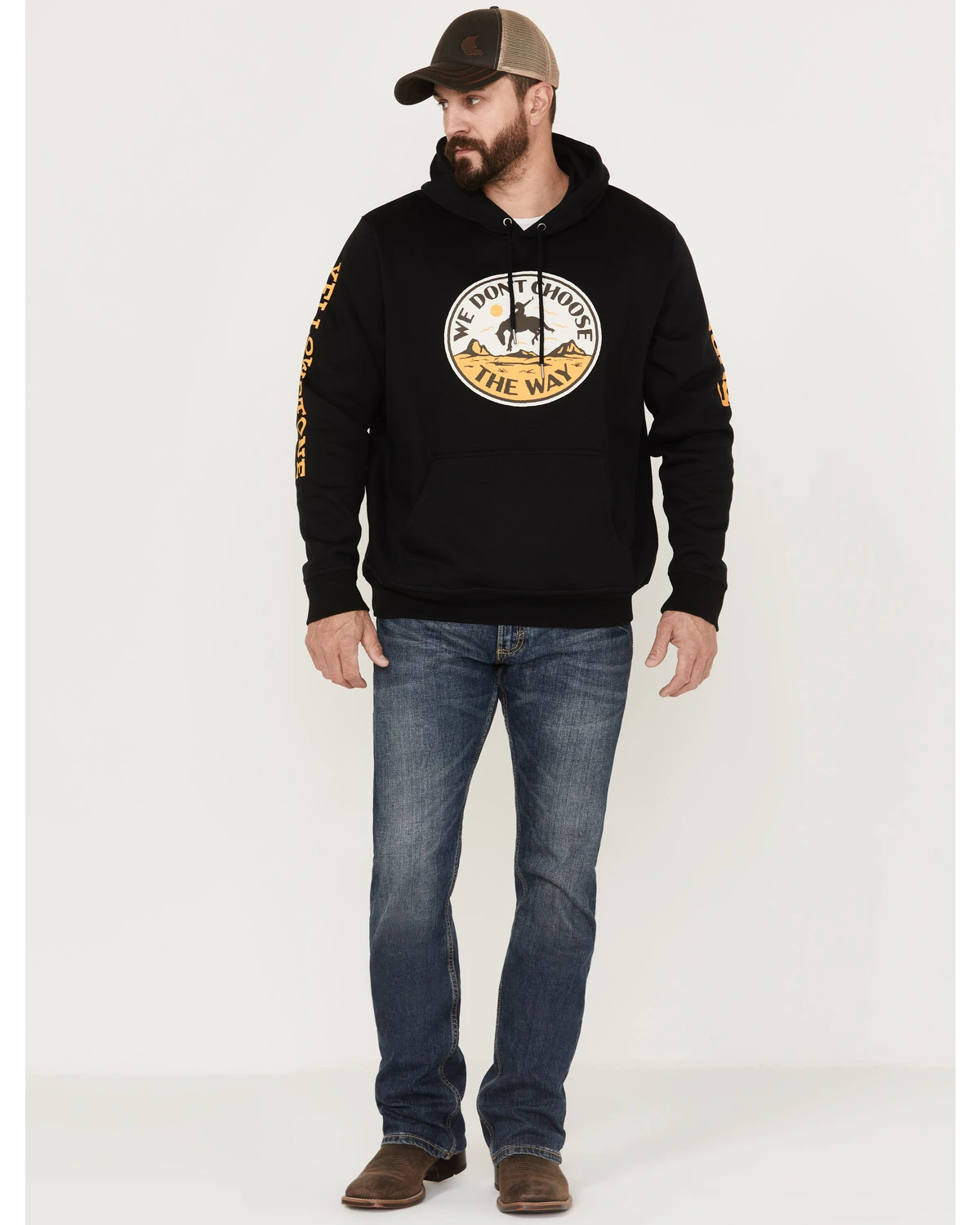 - “We Don’t Choose The Way” with bucking horse and cowboy circle graphic on front