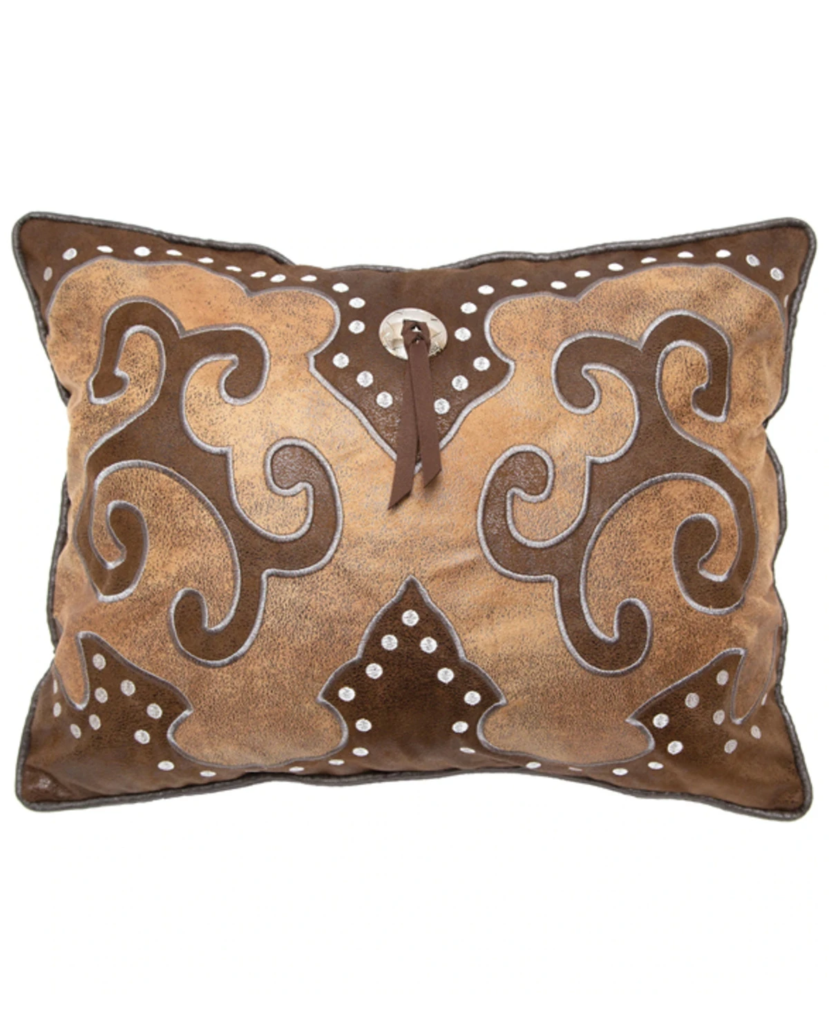 - Round silver studded accents and concho with tassel